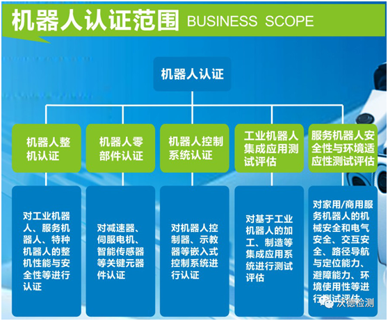 沃德檢測擁有專業的技術團隊,主要認證項目有:機器人CR,中國CCC、SRRC、CTA,歐盟CE、ROHS、REACH、美國UL、ETL、韓國KC、體系ISO9001、ISO14001以及機器人性能測試(GB12642 & ISO9283)等等,歡迎來電咨詢。